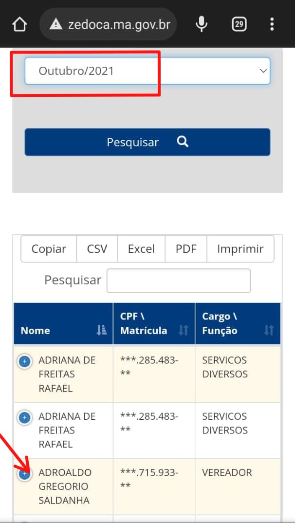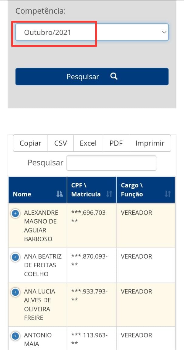 A última folha de pagamento divulgada no portal foi no mês de Novembro de 2021 , Dezembro, Janeiro, Fevereiro e Março ninguém sabe quem recebeu os salários.